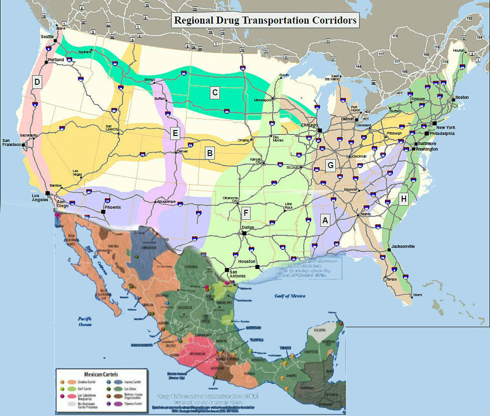 El mapa de arriba, que viene de dos fuentes gubernamentales de los EEUU, demuestra cómo se ven esos nuevos “estados feudales” y su áreas de influencia en el país vecino. Por más que uno busque en sitios públicos en internet, no encontrarás estos dos mapas puestos juntos. Y la razón es que es muy vergonzoso ver como los dos países tienen este tipo de relación económica. Un ejemplo del pudor yankee.