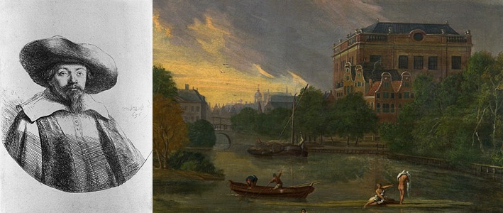 Portrait of Rabbi Mennaseh ben Israel by Rembrandt, source Wikipedia. Painting of Qahal Qaddosh Talmud-Toráh, artist not cited, source jewishhistoryamsterdam.com